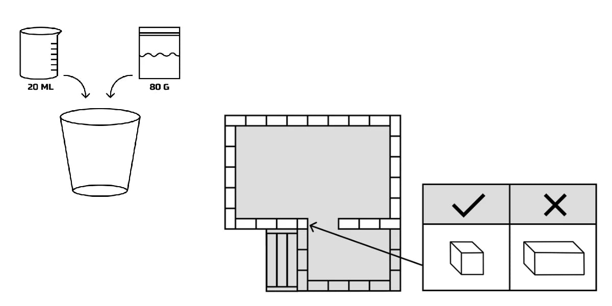 Take the bag with 80g of the mortar. Mix one of the three bags with 20ml of water to make the previous foundation.