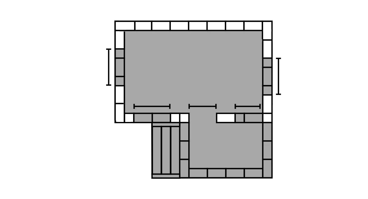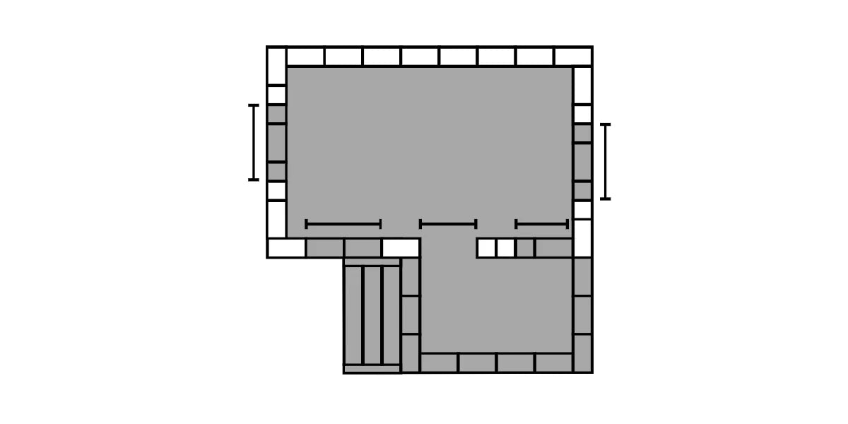 All longer bricks should be placed above the larger windows, and one smaller one above the door, with another smaller one to its right.