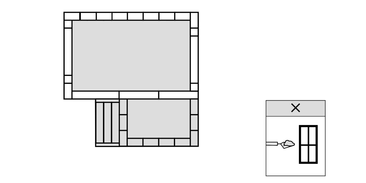 Their locations are marked in grey in the picture and cannot be filled in until you have finished laying nine layers. Don't forget to check after laying each layer whether the windows fit by adding them and then removing them again.
