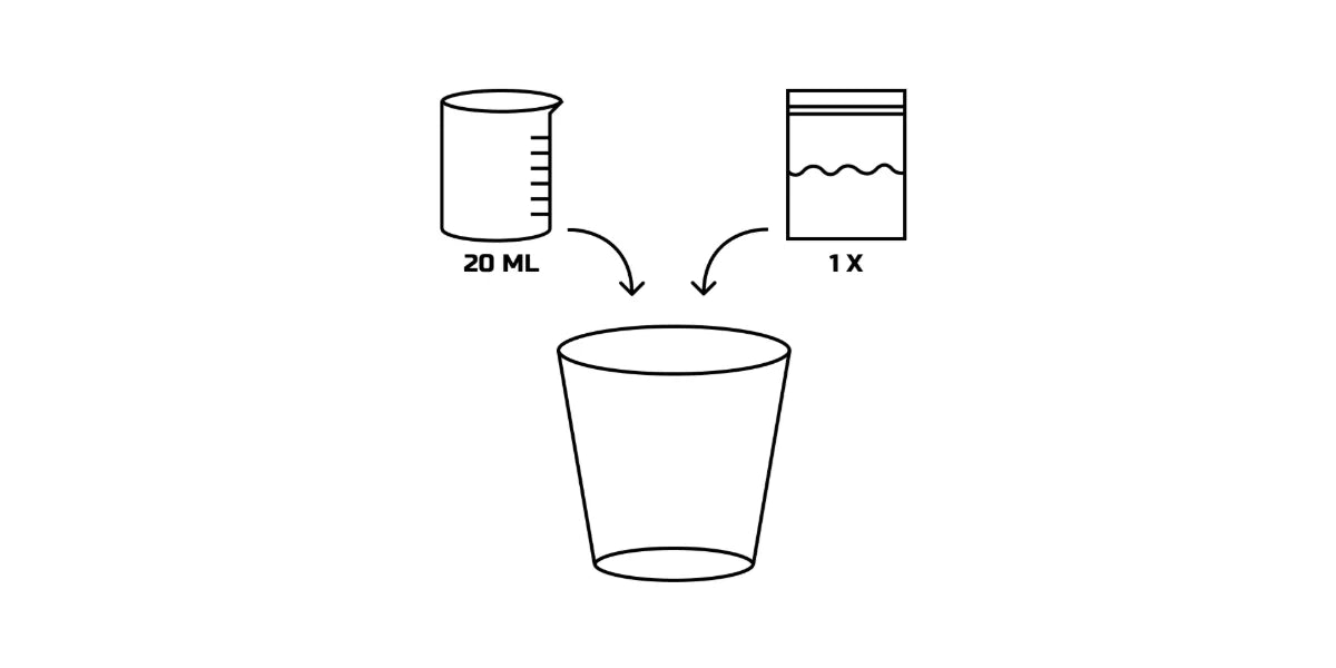 Take your measuring cup and add 20ml of water, stirring continuously.