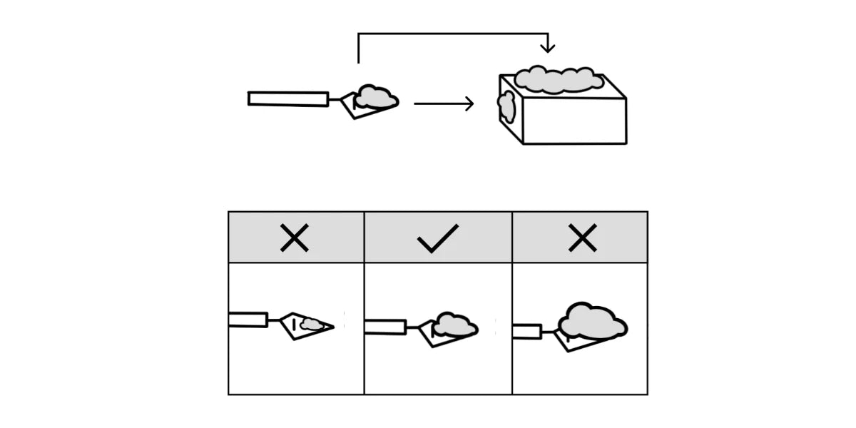 - The average amount of mortar to apply to each brick is shown in the picture.