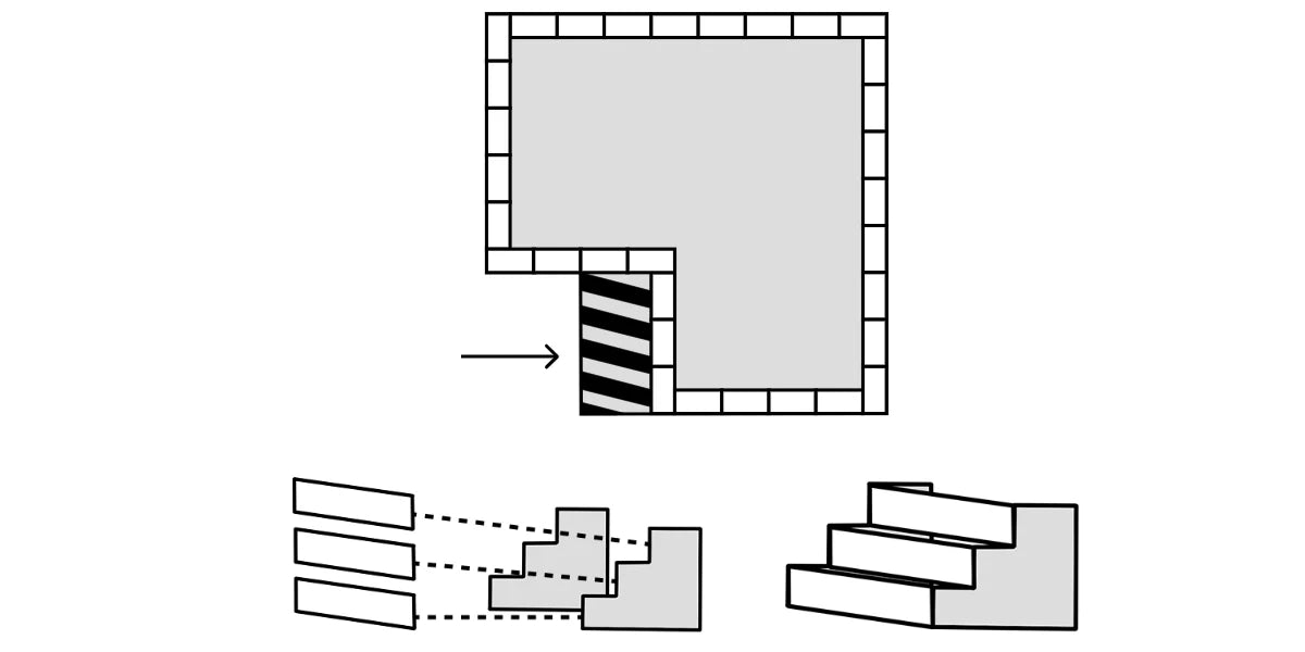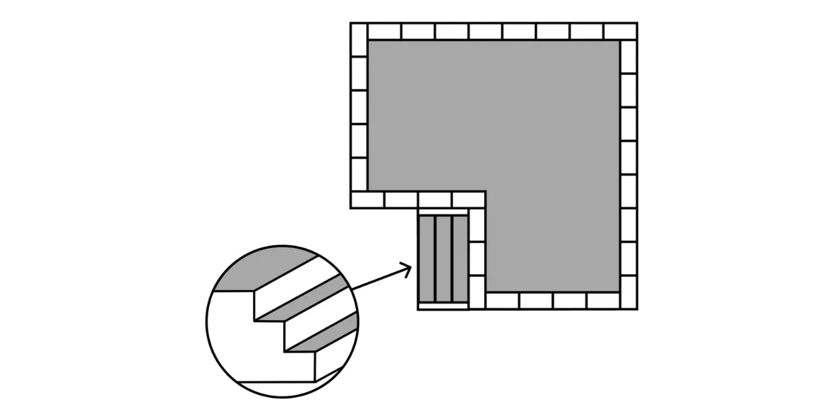 Layer 4: The stairs lead to the porch, so no bricks will be laid there. Now you will begin to form a rectangle. Leave space for the door, you will use one half-brick for this purpose in this layer.